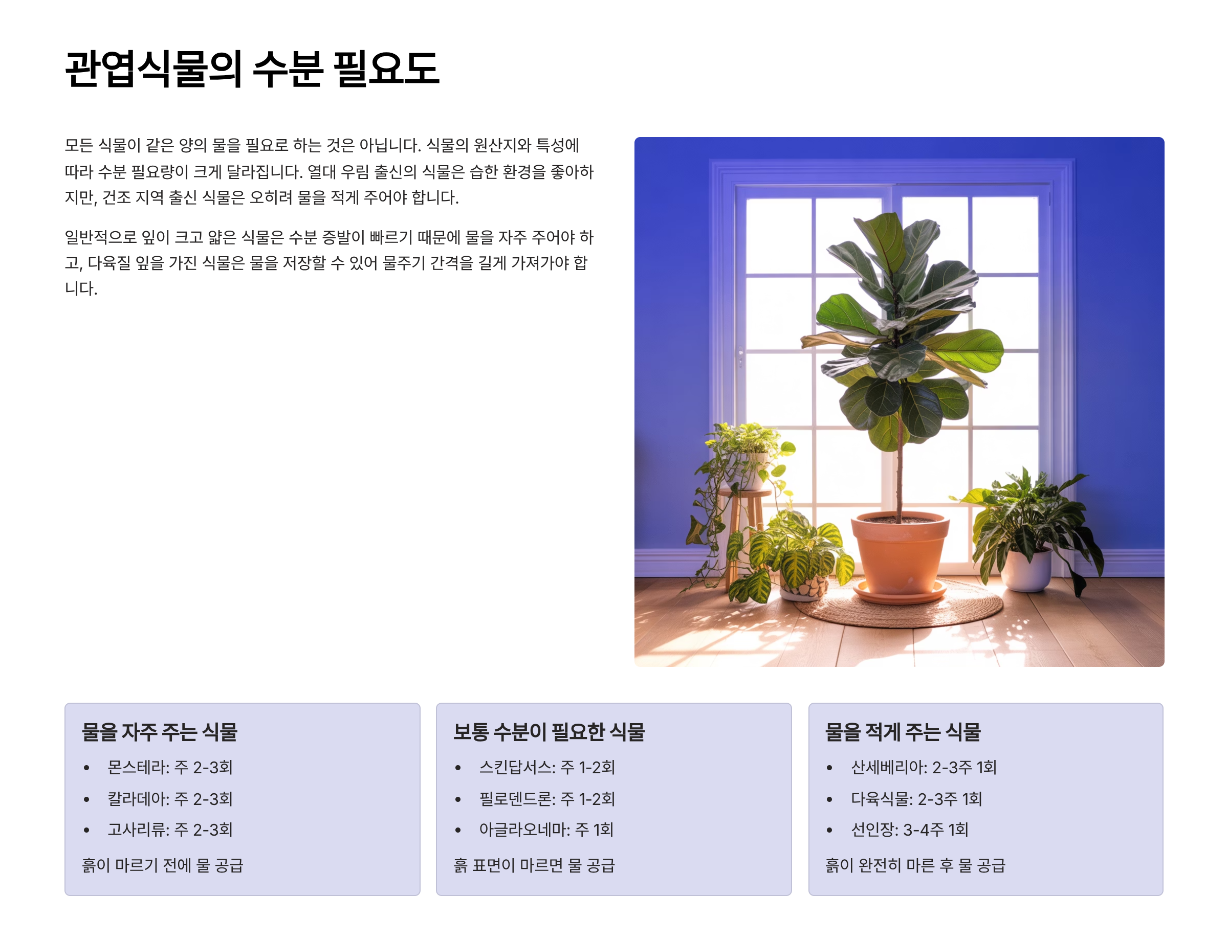 🌿 관엽식물의 수분 필요도
