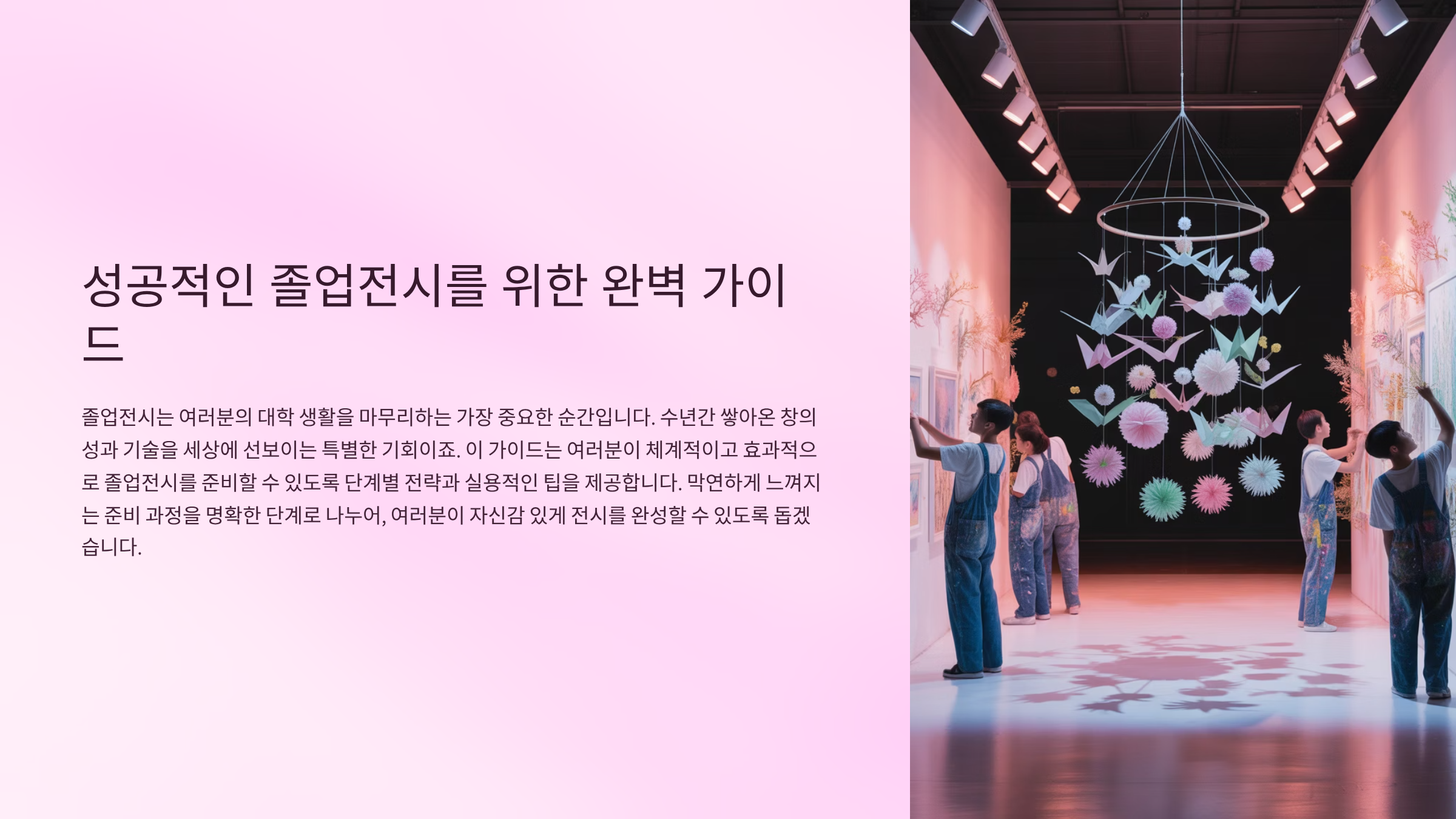 졸업전시회는 단순한 과제가 아니에요. 대학 생활의 마지막을 장식하는 중요한 프로젝트이자, 나만의 브랜드와 실력을 세상에 처음 공개하는 무대죠. 그래서 언제, 어떻게 준비하느냐에 따라 퀄리티가 크게 달라질 수 있어요.
