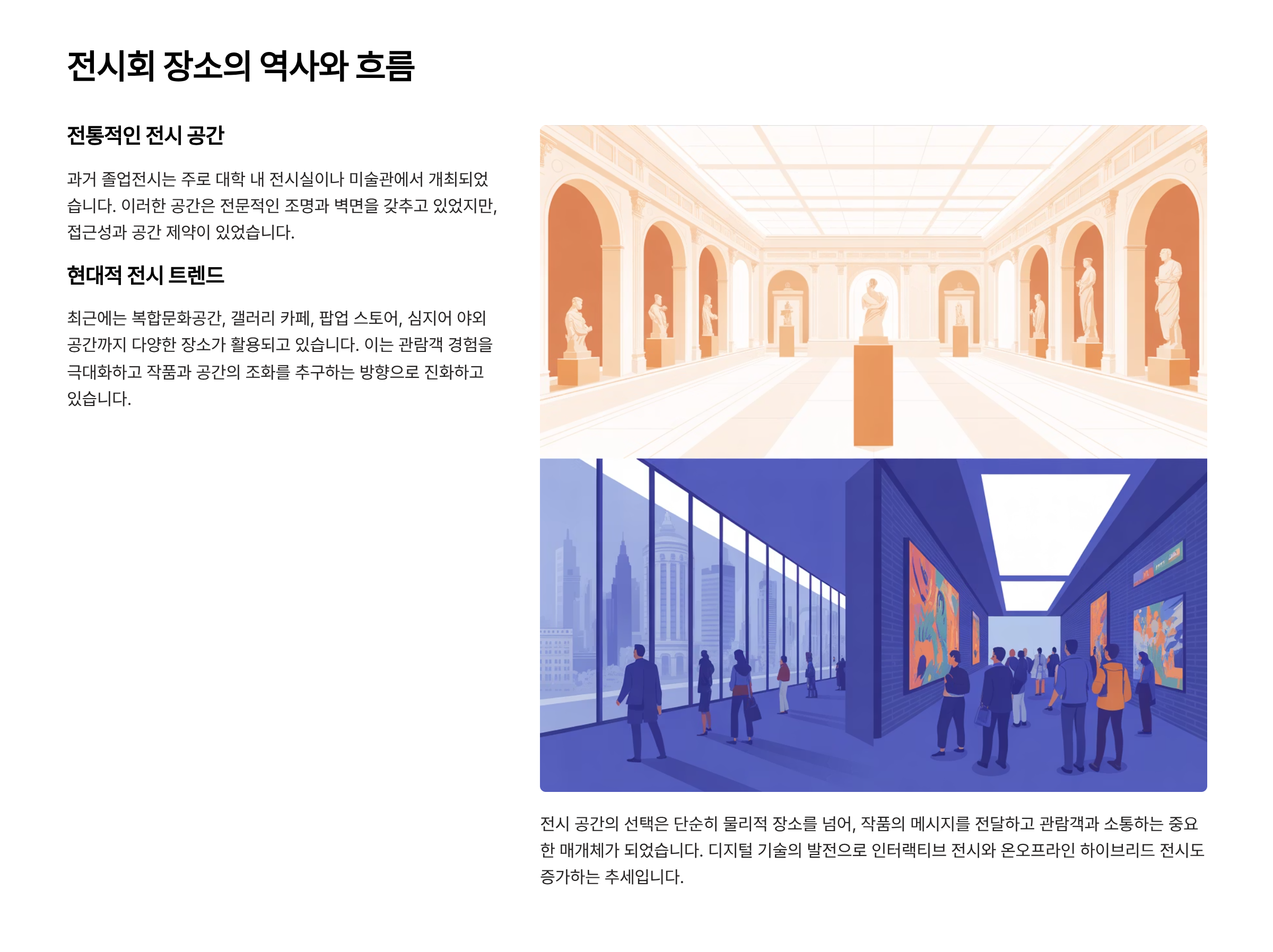 이런 흐름 속에서 졸업전시회 장소는 상징성과 메시지를 담을 수 있는 '의미 있는 공간'으로 진화 중이에요. 단순히 비어 있는 공간이 아닌, 그 공간의 역사, 분위기, 동선까지 고려하는 것이 기본이 되었어요.