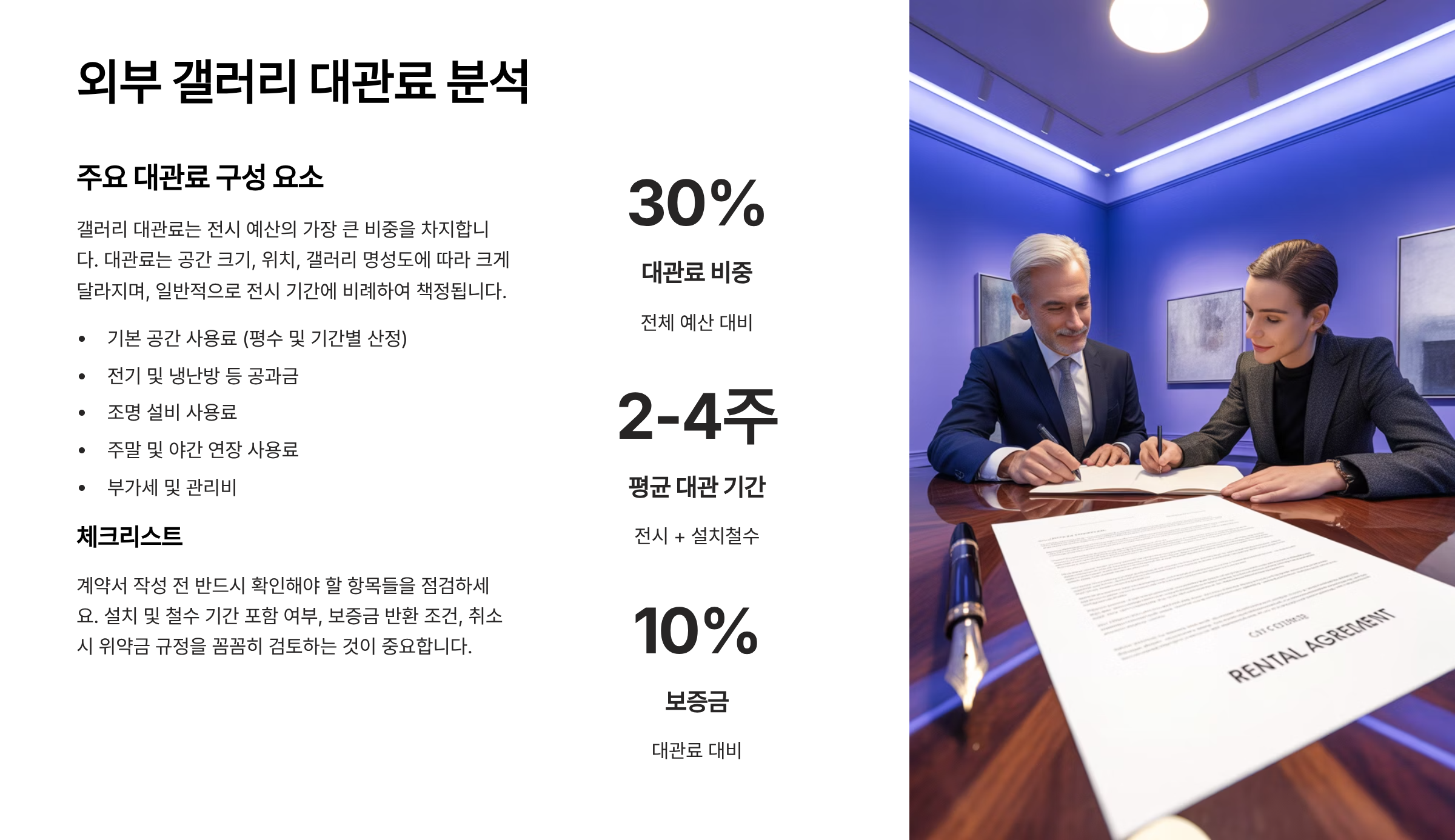 📌 이 글은 2025년 기준 일반적인 외부 갤러리 졸업전시 준비에 관한 정보를 담고 있어요. 실제 비용과 조건은 갤러리별로 상이할 수 있으며, 본문 내용은 법적 책임을 지지 않아요.