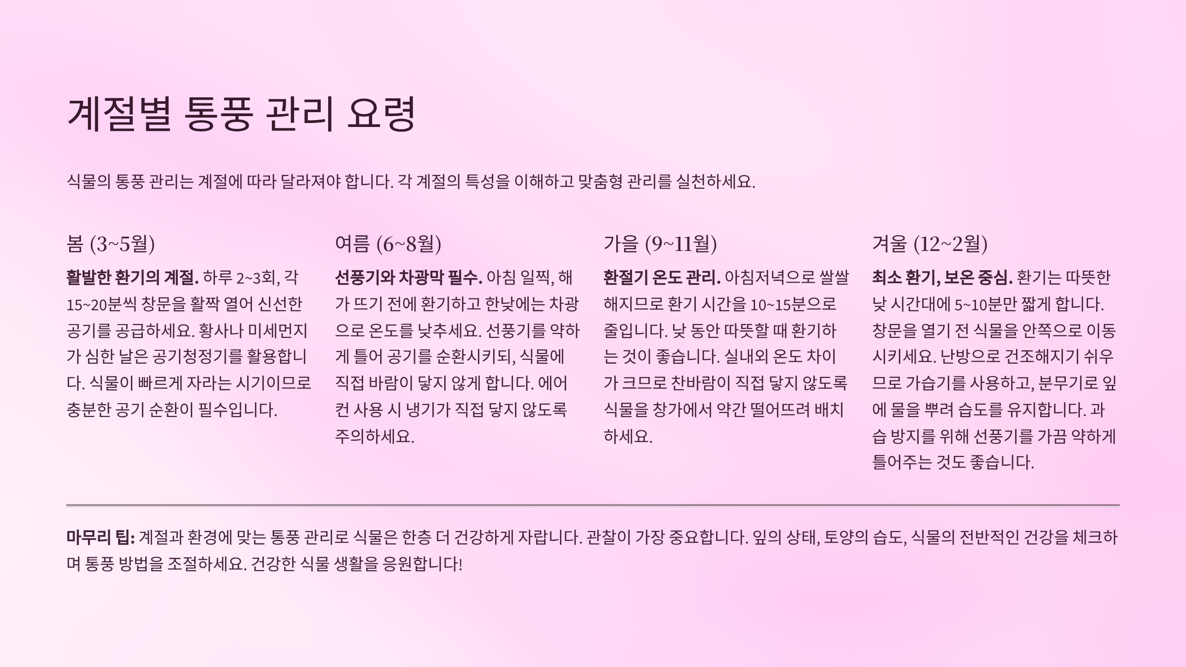 📊 계절별 통풍 관리 요령 요약표 📝