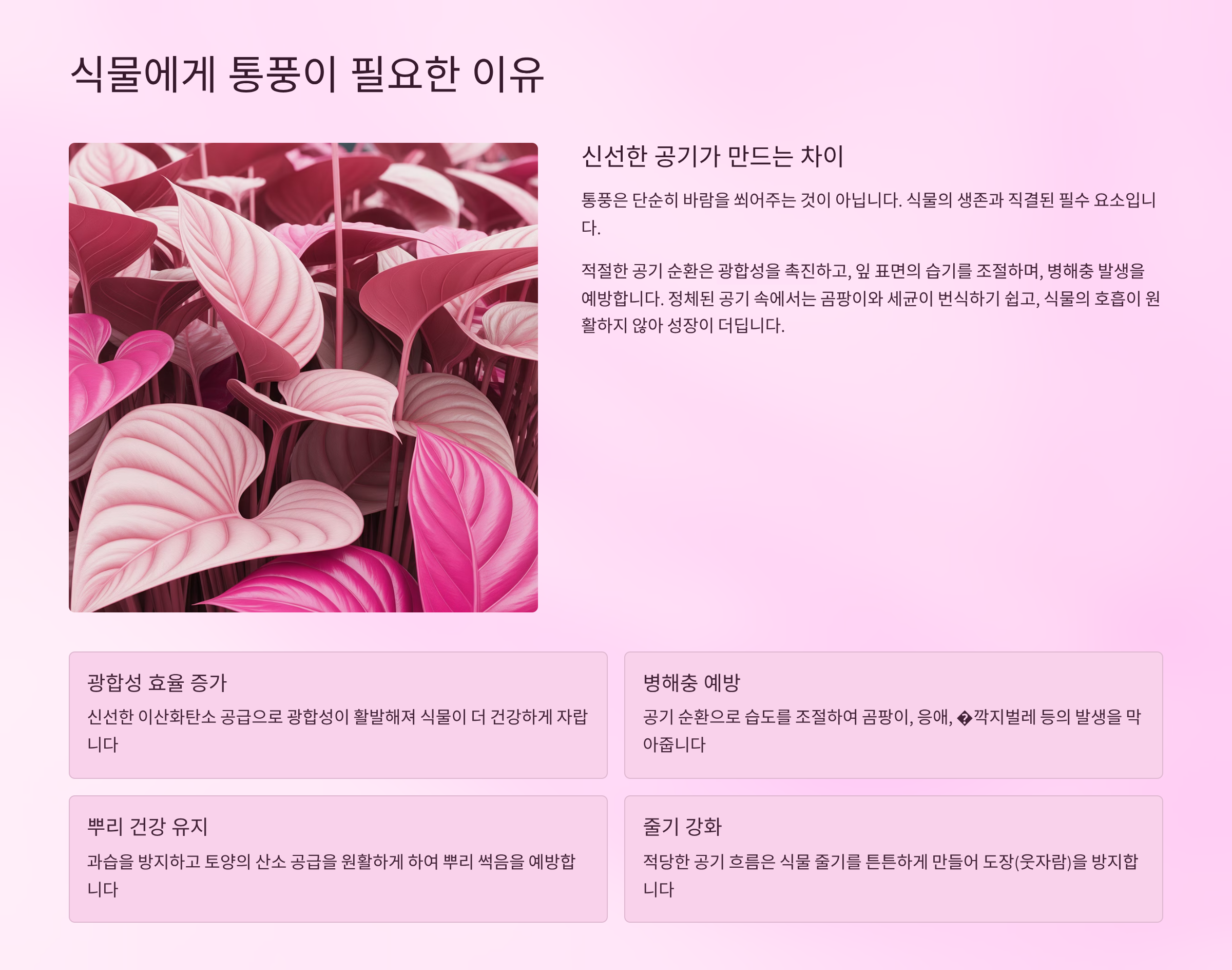 | 광합성 증가 | 공기 순환이 기공 기능을 도와줘요 |