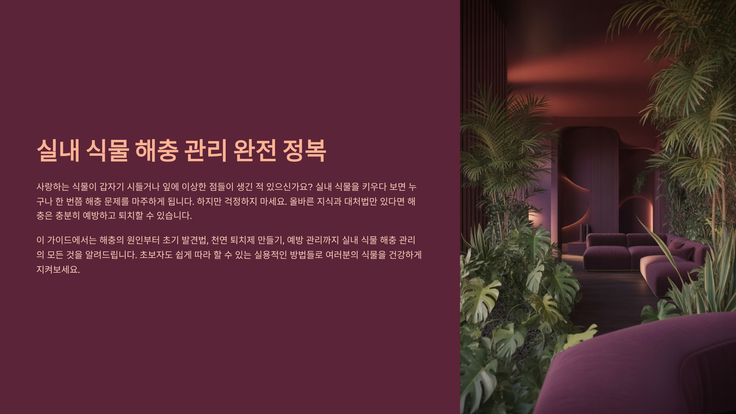 그럼 지금부터 초기에 발견하고, 확산을 막고, 자연스럽게 회복시키는 해충 퇴치의 모든 방법을 재미있고 쉽게 알려줄게요.👇