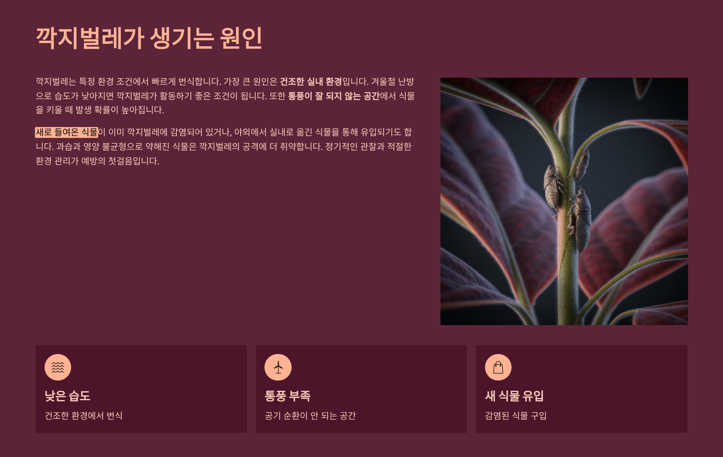 집에서 키우는 식물에 어느 날 하얀 솜뭉치 같은 벌레가 붙어 있는 걸 발견한 적 있나요? 바로 깍지벌레예요. 이 작은 벌레는 식물의 수액을 빨아먹으며 식물을 점점 약하게 만들고, 심하면 죽음에 이르게 할 수 있답니다.