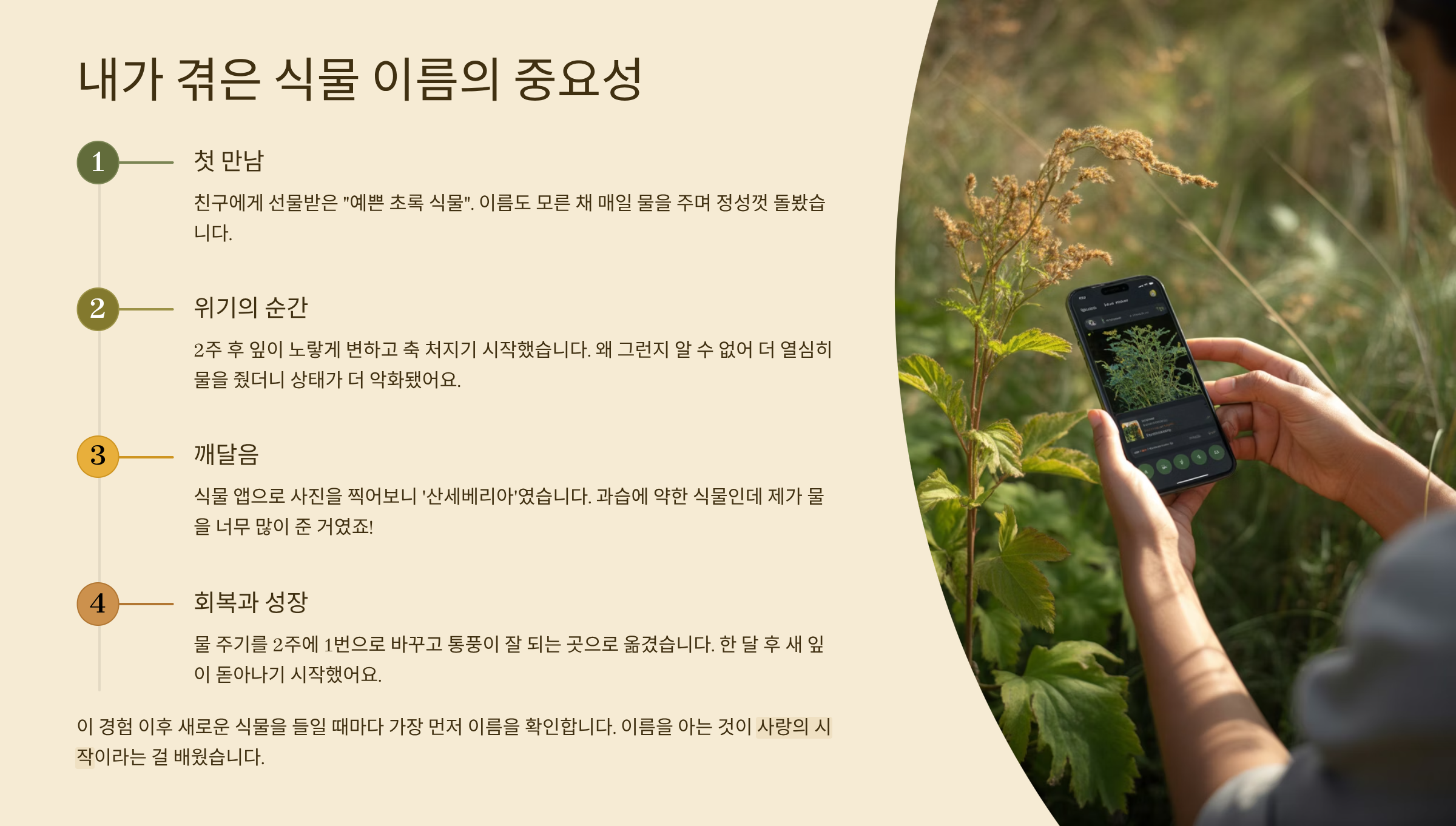 지금부터는 식물 이름을 모르면 생기는 문제부터, 이름을 정확히 알았을 때의 장점, 그리고 실전 사례까지 쏙쏙 정리해서 알려줄게요! 😊