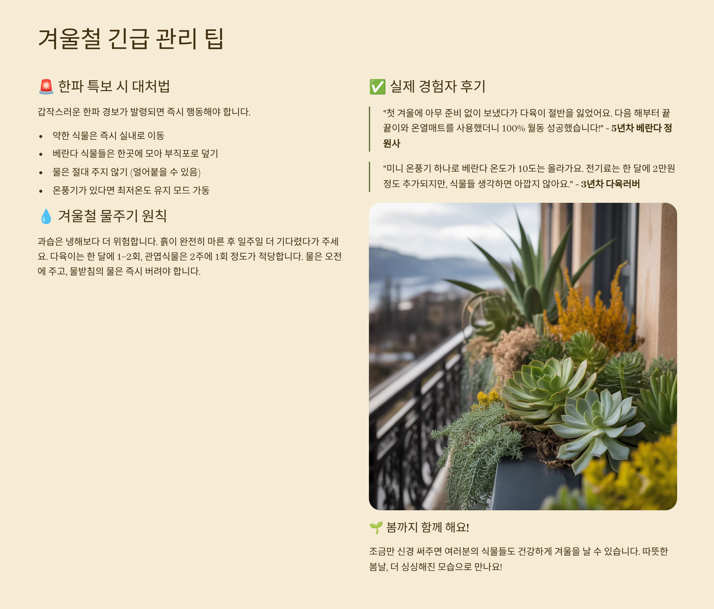 이런 아이템들은 비용이 크게 들지 않으면서도, 식물의 생존율을 훨씬 높여줘요. 작은 투자로 겨울 내내 건강한 베란다를 유지할 수 있으니 꼭 하나씩 준비해보세요 🌼