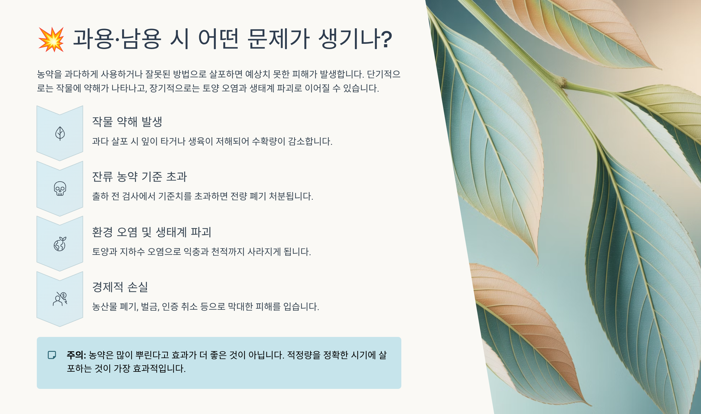 ⚠️ 농약 과용 시 나타나는 현상 요약표