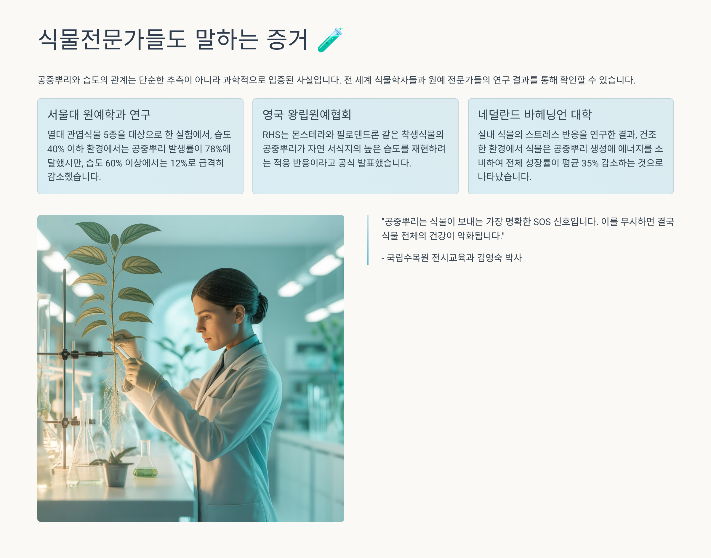 국내 원예학과 교수들도 비슷한 입장이에요. 한림대 생명과학과의 김정호 교수는 식물의 공중뿌리는 "외부 스트레스에 대한 생존형 반응이며, 특히 공기 중 습도를 직접적으로 반영한다"고 인터뷰에서 밝혔어요. 이건 학문적으로도 이미 입증된 내용이에요.