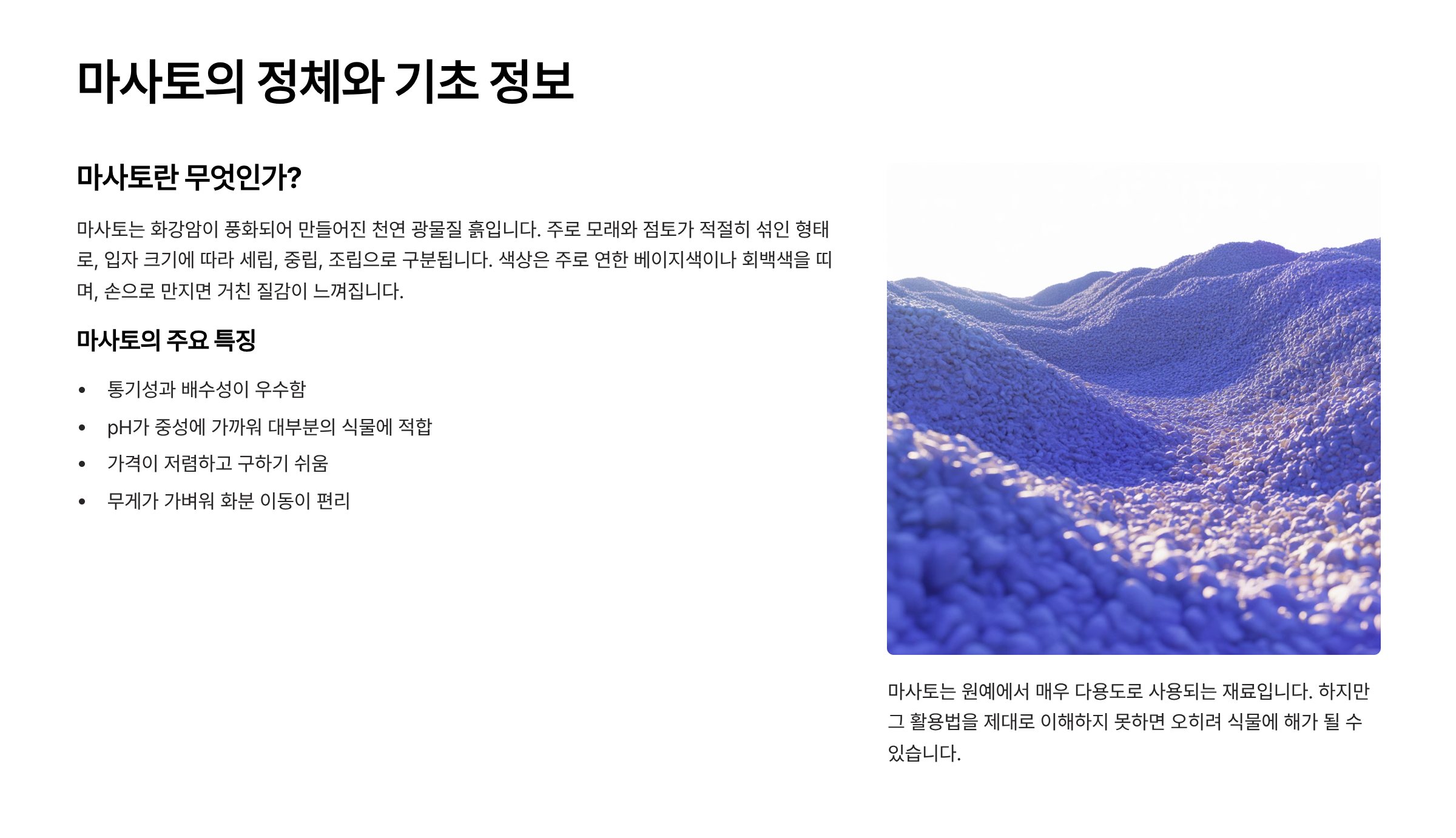 마사토, 원예 자주 하는 사람들 사이에선 익숙한 단어예요. 하지만 막상 마사토를 어떻게 써야 할지는 헷갈리기 쉽죠. 대부분 "배수층에 마사토 깔면 된다"라고 생각하지만, 이건 반은 맞고 반은 틀린 이야기랍니다.