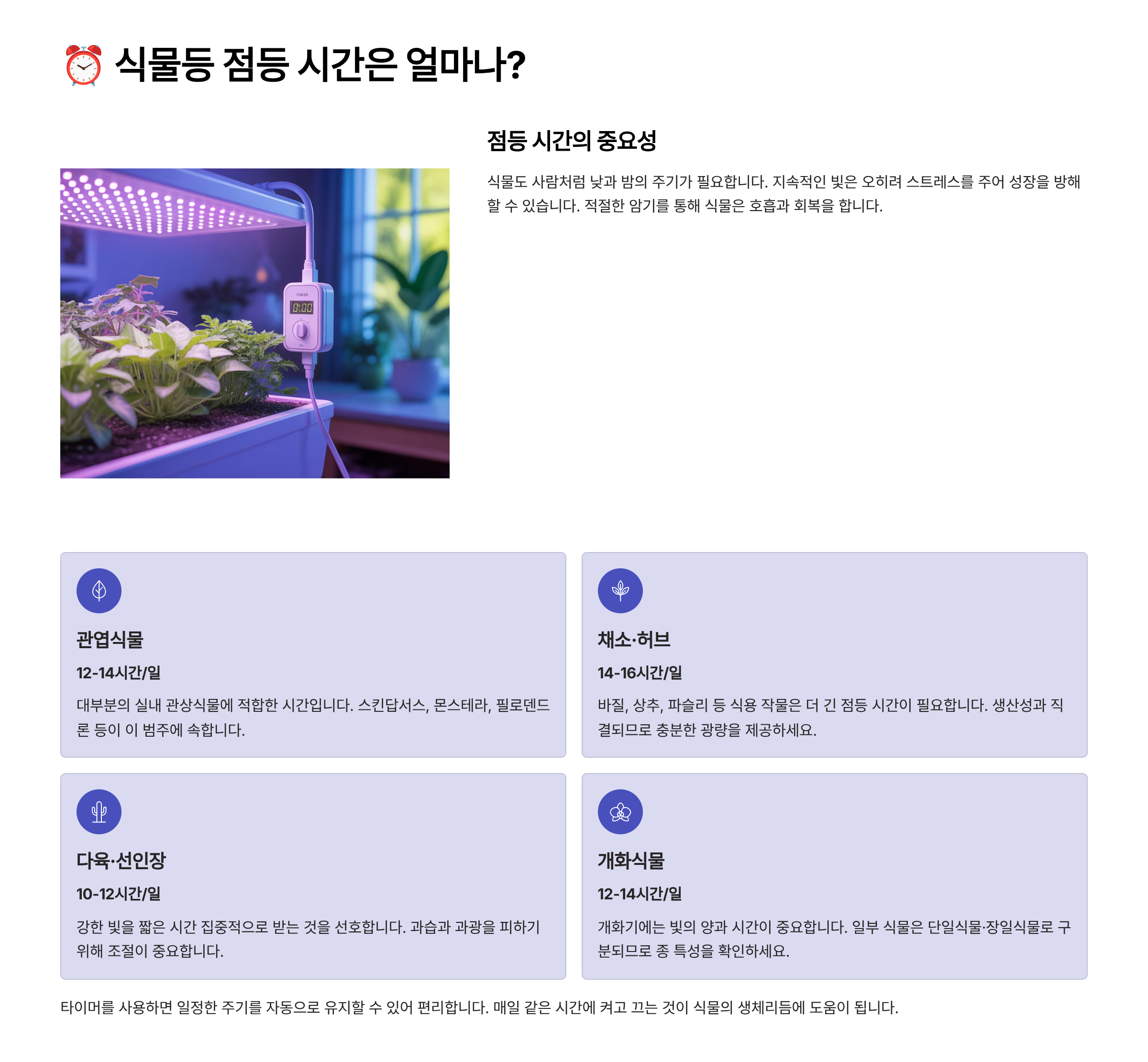 📌 면책 조항: 본 글은 실내 식물재배 및 식물등 사용에 관한 일반적인 정보를 제공하기 위한 목적이며, 특정 식물 상태나 브랜드에 대한 전문적 조언을 대신하지 않아요. 각 사용자 환경에 따라 조명 세팅은 달라질 수 있으니 참고자료로 활용해 주세요.