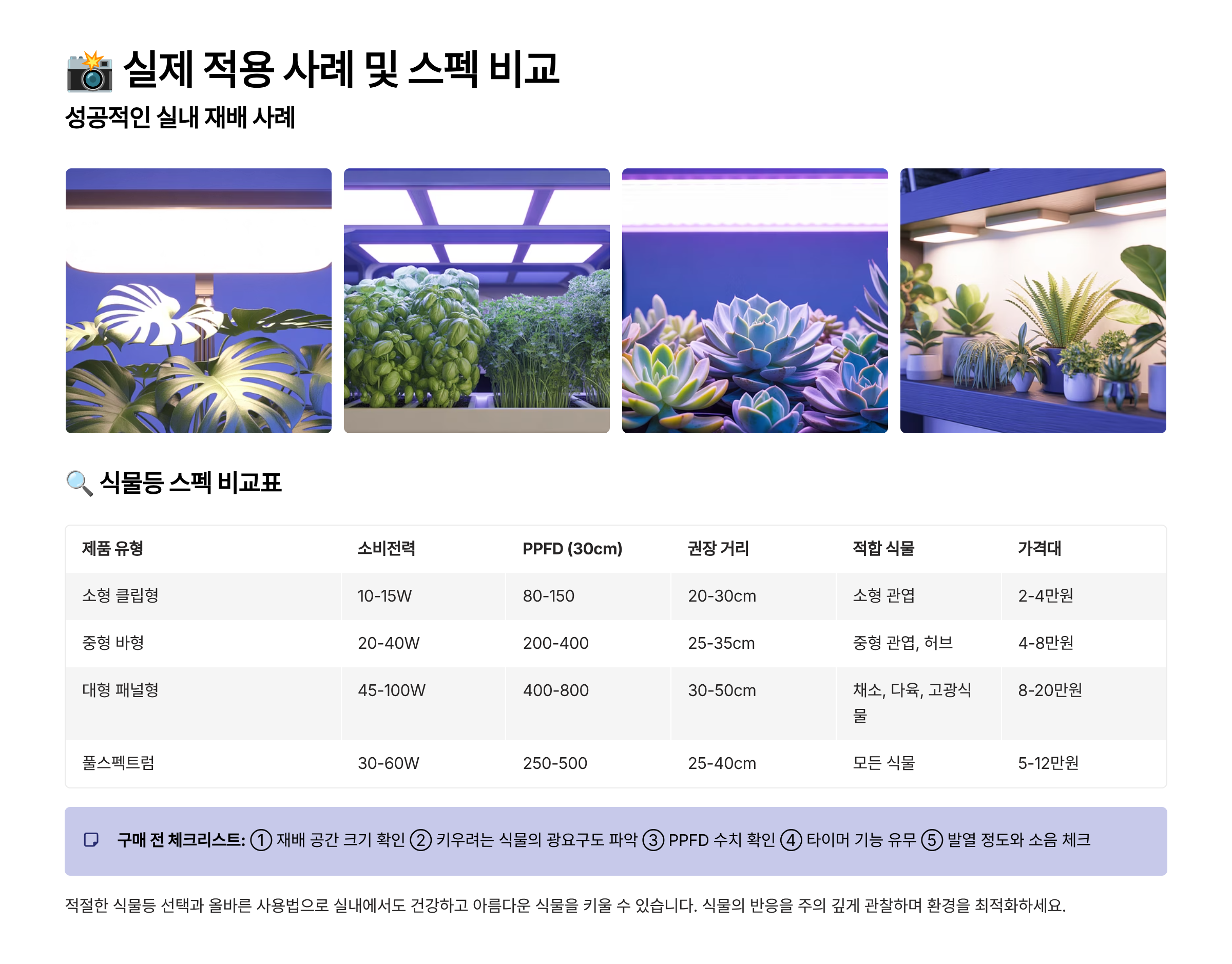 이론만으로는 감이 잘 안 올 수 있어요. 그래서 이번에는 실제로 식물LED 식물등을 활용해서 식물을 잘 키운 사례들을 분석해볼게요. 초보자부터 도시농부, 실내 가드닝 전문가까지 다양한 환경에서 어떻게 거리·PPFD·시간을 조합했는지 생생하게 알려드릴게요. 👀