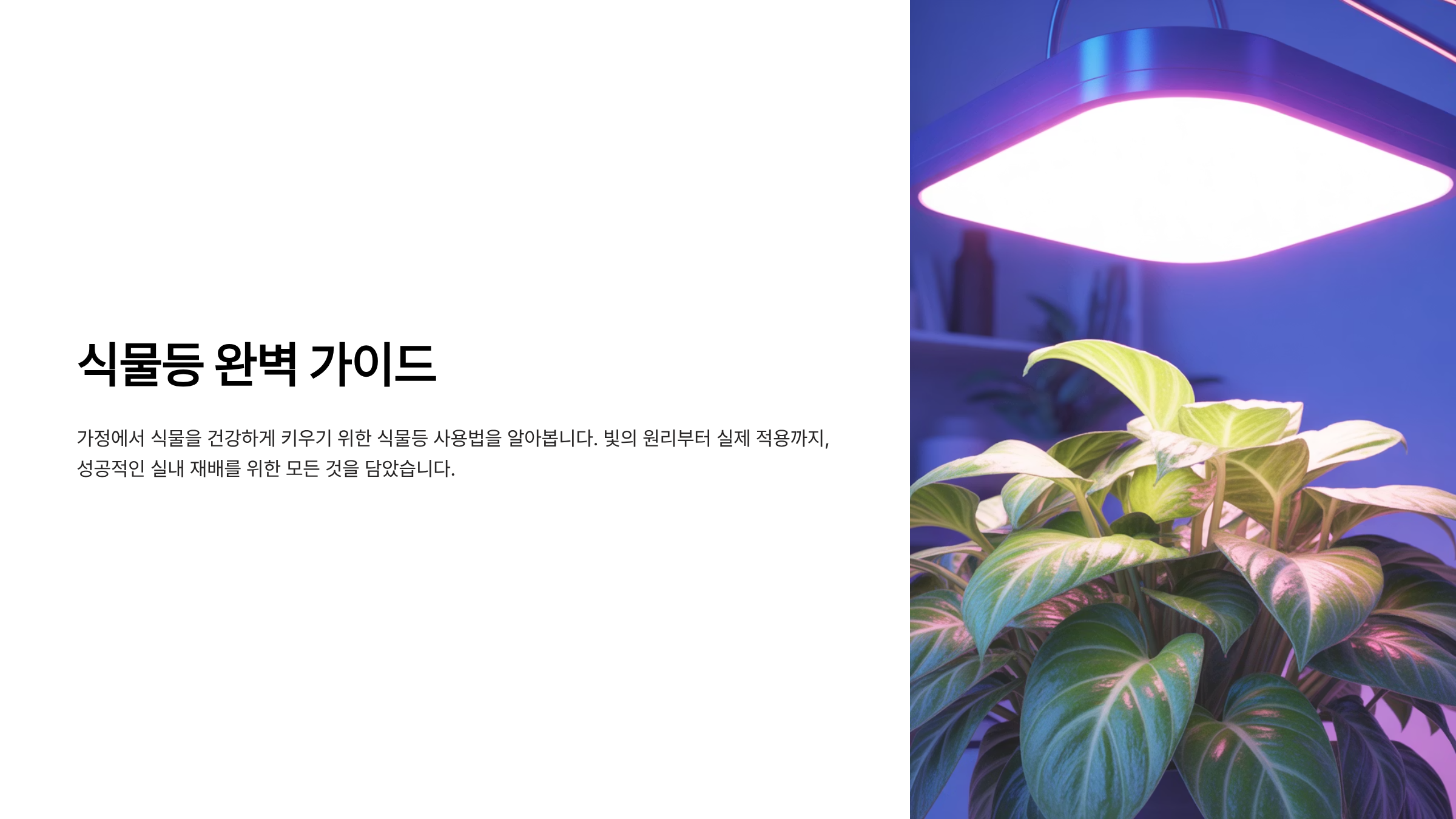 📌 면책 조항: 본 글은 실내 식물재배 및 식물등 사용에 관한 일반적인 정보를 제공하기 위한 목적이며, 특정 식물 상태나 브랜드에 대한 전문적 조언을 대신하지 않아요. 각 사용자 환경에 따라 조명 세팅은 달라질 수 있으니 참고자료로 활용해 주세요.