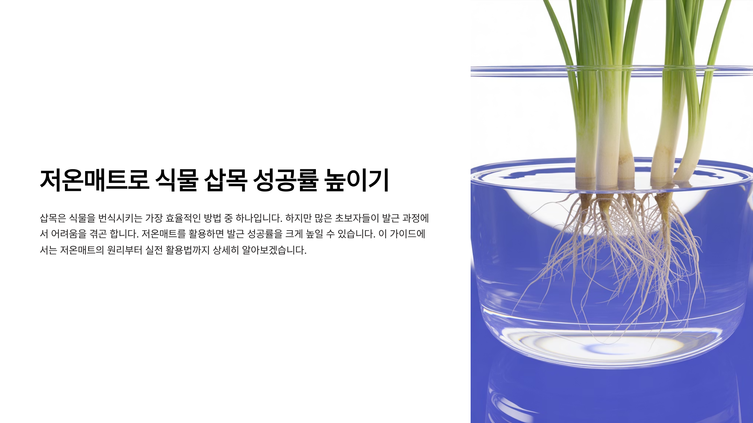 이제부터 삽목 성공률을 올리고 싶은 분들을 위해 저온매트의 원리부터 제대로 활용하는 방법, 실제 성공 사례까지 하나씩 알려드릴게요!