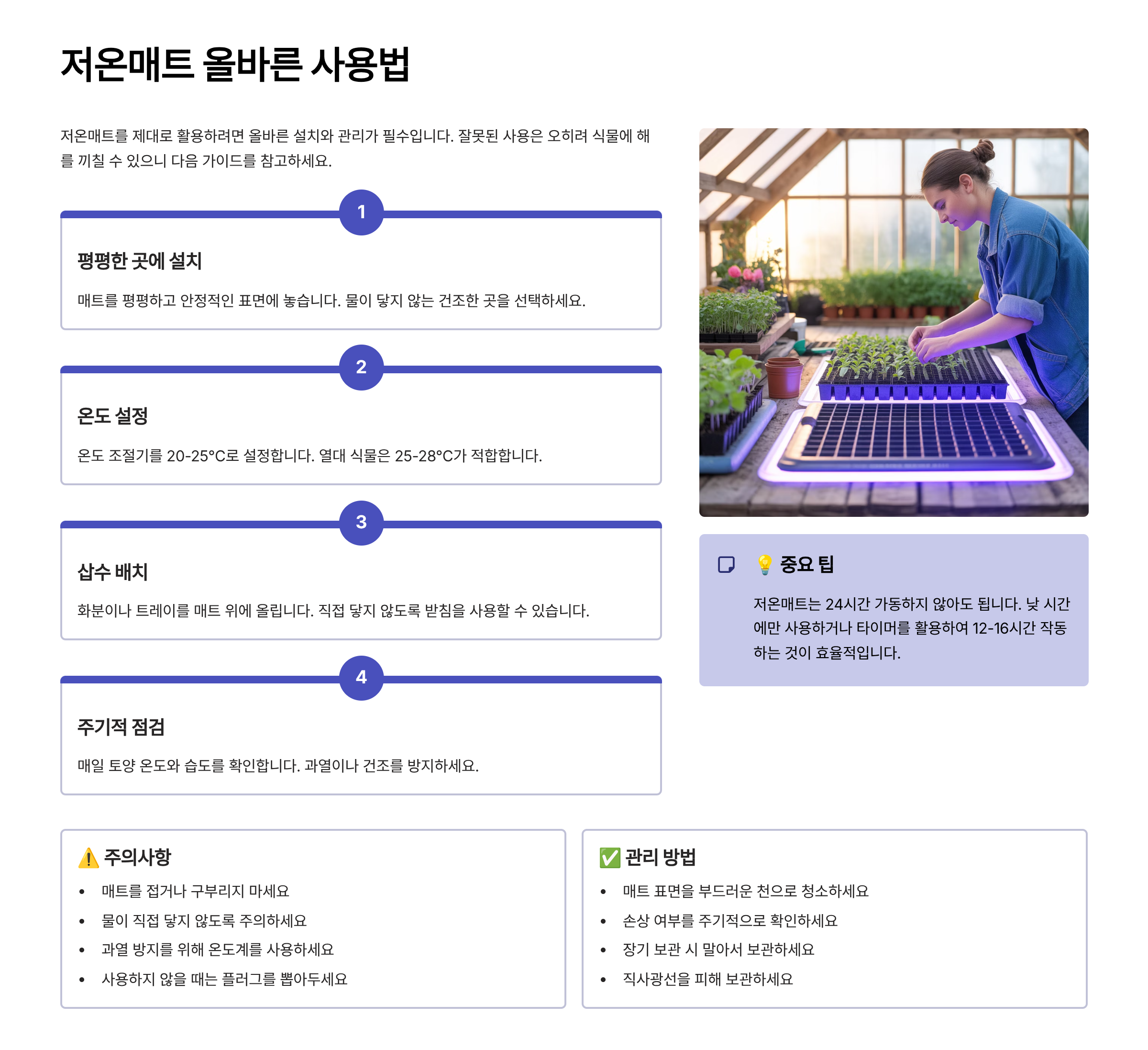 🛠️ 저온매트 설치 및 사용 팁 요약표 📌