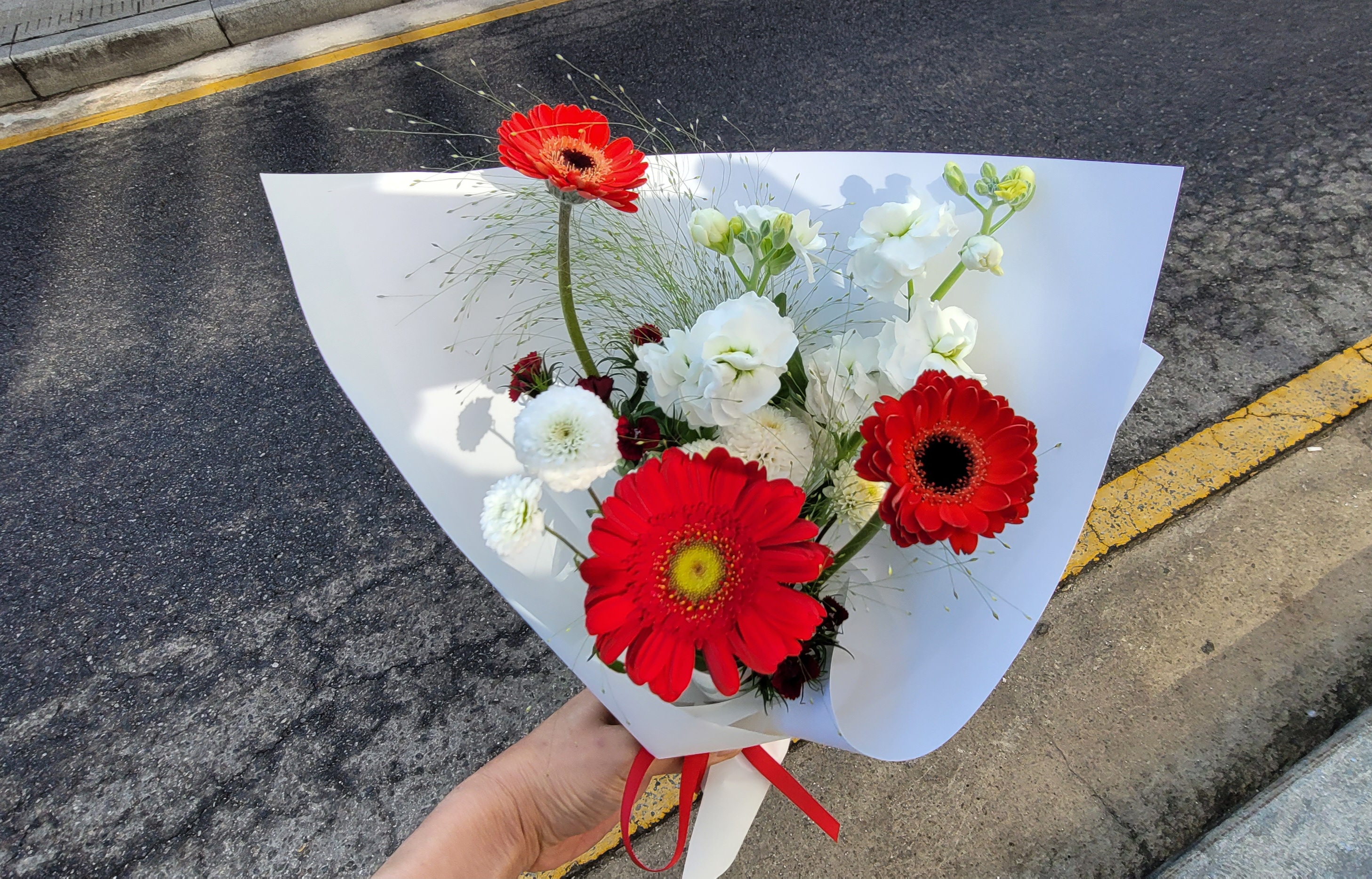꽃다발 완성 후에는 물 스프레이를 살짝 뿌려줘서 생기를 유지시키고, 바로 전달할 수 있도록 보관 온도도 신경 써야 해요. 꽃은 따뜻한 실내보다는 시원한 장소에 보관하는 게 오래가요. ❄️