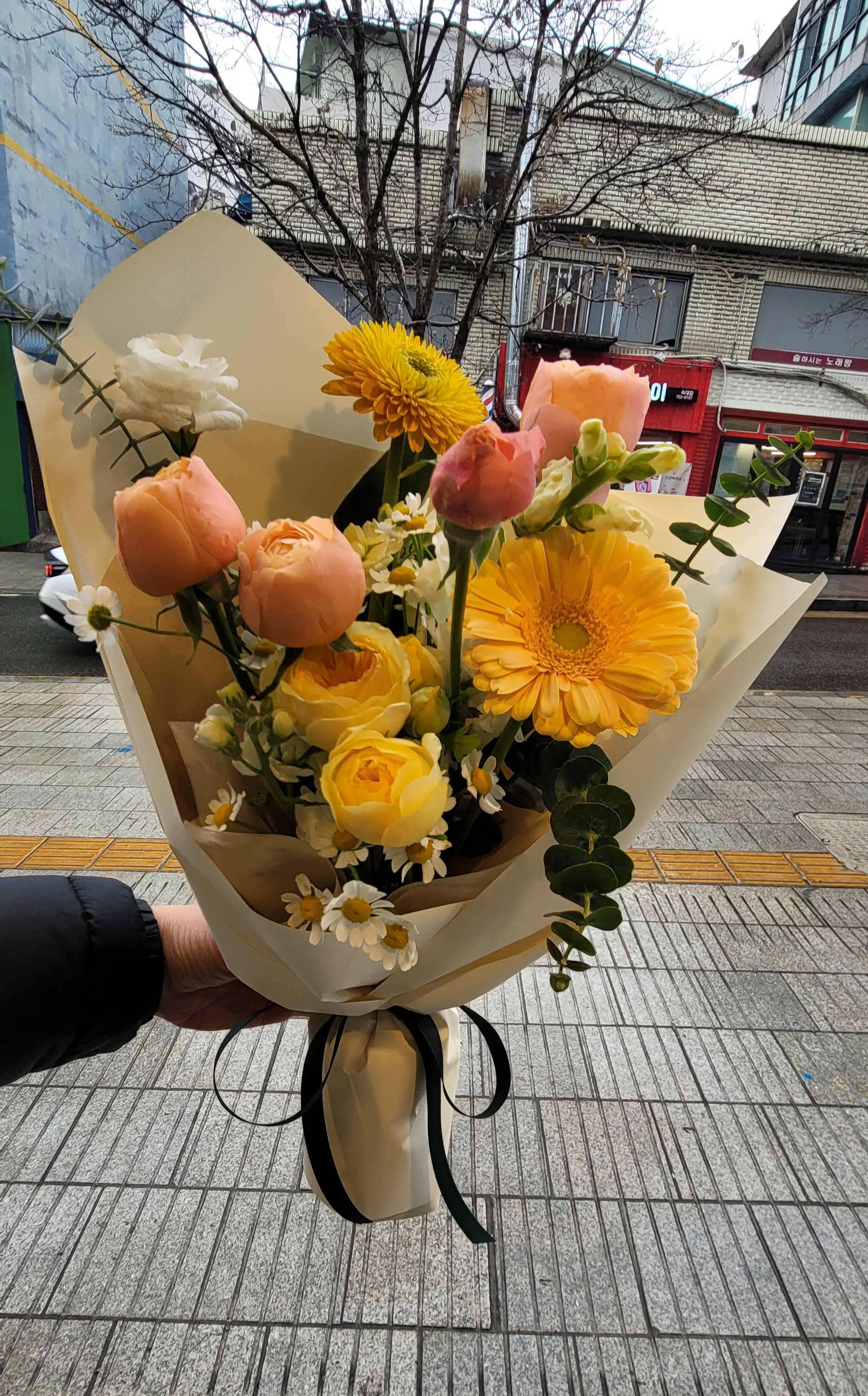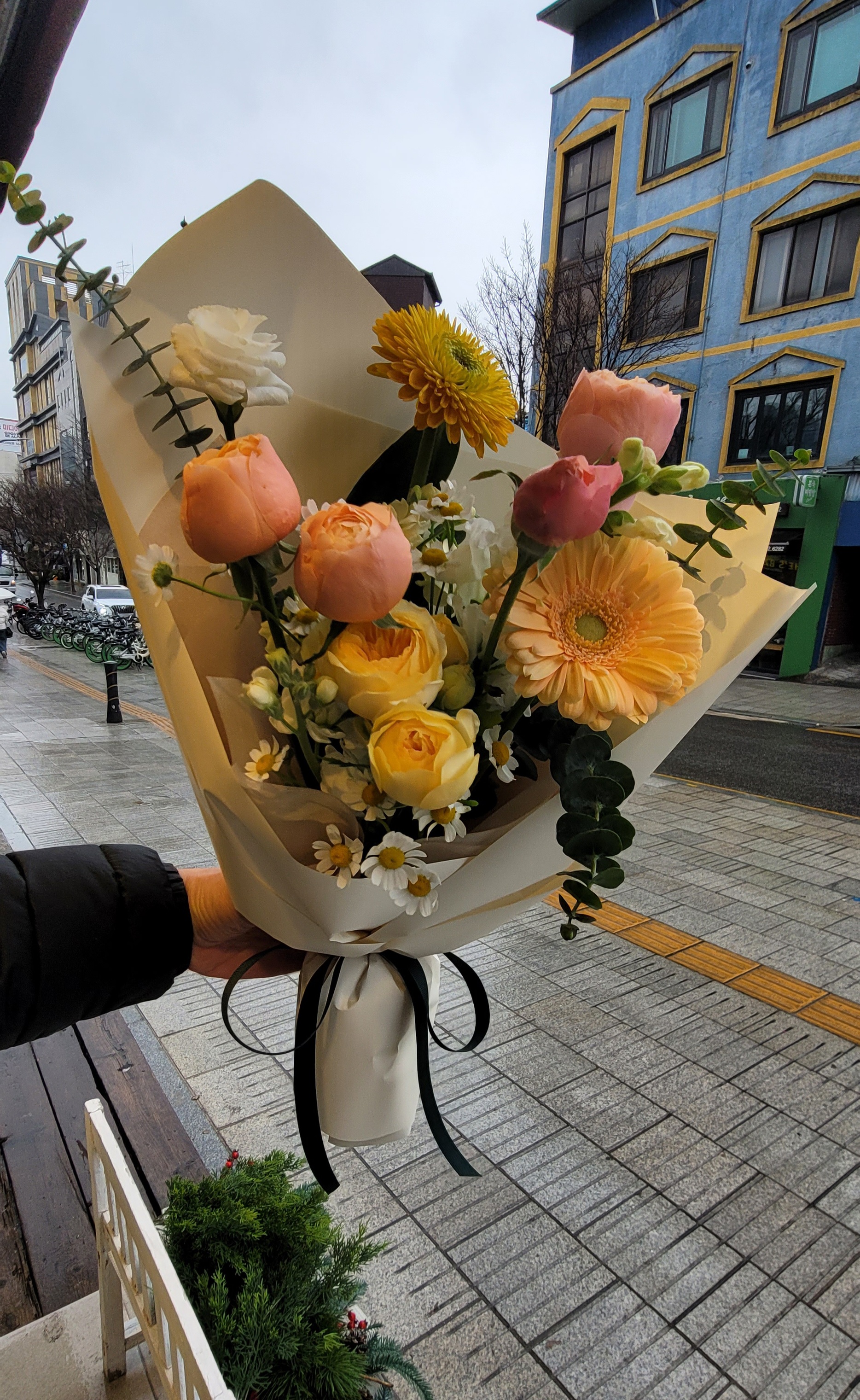 꽃다발의 구성을 고려할 때는 메인 플라워 외에도 그린 소재나 포인트 플라워를 적절히 활용하면 좋아요. 예를 들어 유칼립투스나 로즈마리는 향도 좋고 분위기도 따뜻하게 만들어줘요. 🎍