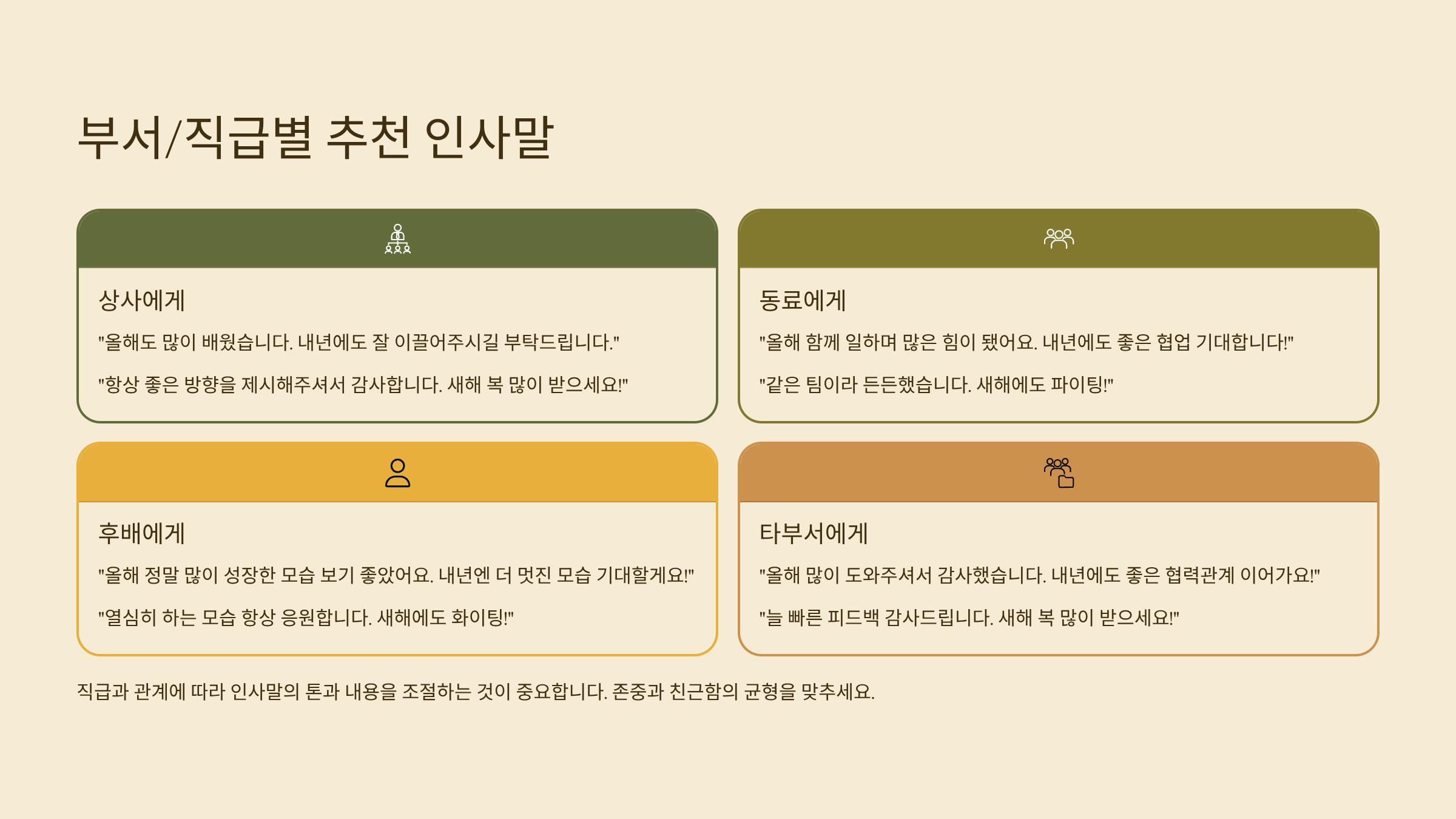 📊 직급/부서별 인사말 가이드