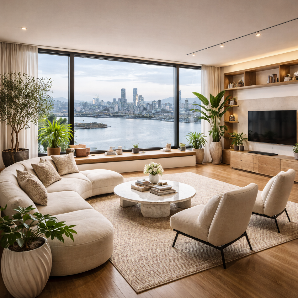 거실은 우리 집에서 가장 많은 시간을 보내는 공간이자 손님을 맞이하는 얼굴이에요. 그래서 분위기 하나하나가 중요하죠. 감성을 더하고 싶을 때, 식물 하나만 잘 배치해도 거실이 살아나요 🌿