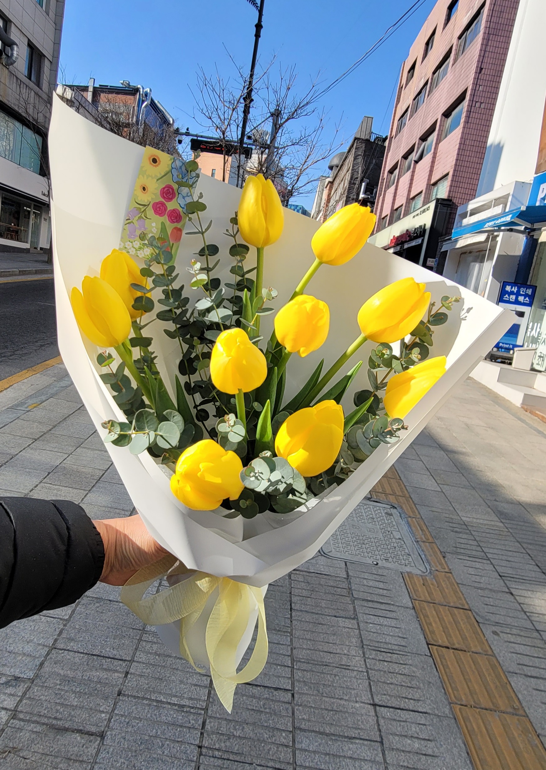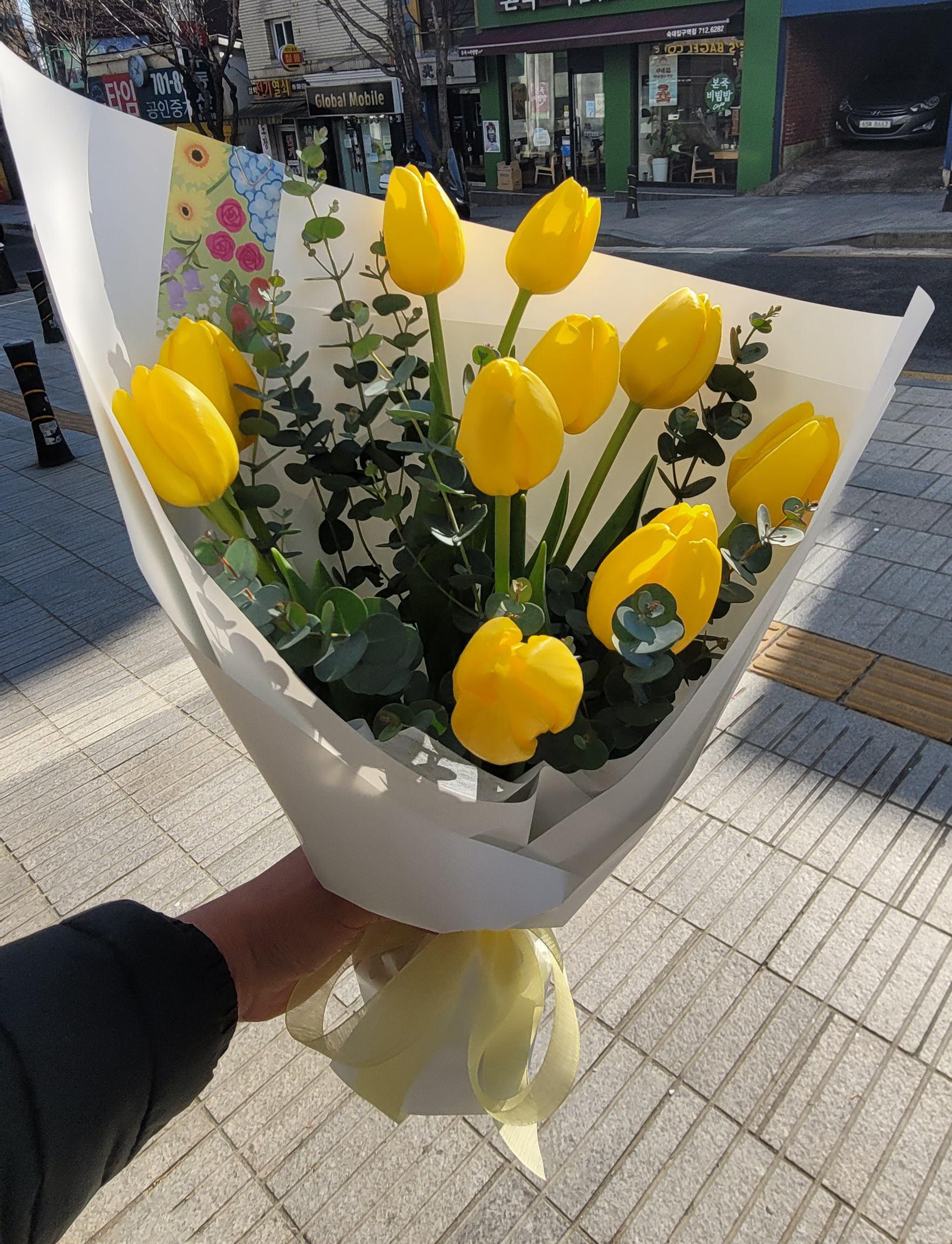 노랑 튤립 꽃다발을 만들 때, 단순히 꽃을 모아 묶는 것보다 조금만 더 아이디어를 더하면 훨씬 특별한 선물이 될 수 있어요! 졸업식이라는 특별한 날에 맞춰 스타일링하면 감동도 두 배, 사진도 예쁘게 남길 수 있답니다. 😊