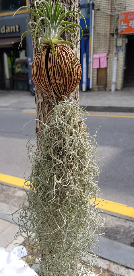 식물이지만 식물 같지 않은 수염 틸란드시아를 최근에 미세먼지나 공기정화에 좋다고 알려져 많은 분들의 사랑을 받고 있는 수염 틸란드시아입니다. 미국 남동부, 중부, 아르헨티나가 원산지라고 합니다. 이오난사와 수염 틸란시아가 같이 어우러져 있으니 정말 보고 좋네요. 그럼 천천히 알아보는 시간을 가져 보겠습니다. 어떻게 하면 이오난사와 같이 잘 키울 수 있을까요? 공중 식물로서 숲에서는 나무에 가지에서 붙어서 같이 지낸다고 합니다. 그러기 때문에 실내에서도 창가나 걸어서 키울만한데 해놓으시면 될 것 같습니다. 실내에서 키우기 적정한 환경 온도는 20도에서 26도 정도면 좋습니다. 추위에 약하기 때문에 겨울에는 창가 쪽에 두셨다면 다른 곳으로 옮겨 주시는 게 좋습니다. 겨울에는 적정온도는 10도 이상 유지해 주면 좋겠습니다. 미세먼지&공기정화가 좋으니 아이들 방이나 거실 등에 키우시면 좋습니다. 햇빛을 좋아하기 때문에 햇빛이 들어오는 곳에 위치하는 것도 좋습니다. 보통 이오난사와 수염 틸란드시아는 공통적으로 물은 한단에 1회 정도면 충분합니다. 혹시 물주시는 걸 놓치셨다면 발육상태를 보고 분무기로 뿌려 주든지 아니면 물에 담가 놓고 어느 수염 틸란드시아 상태에 따라 물에서 꺼내시면 됩니다. 참고로 물 주는 주기가 2달 정도 지났다고 생각하면 물에 3시간 정도 담가 놓는 게 좋을 듯합니다. 이오난사 같은 경우는 꽃을 피울 때 보동 5일 정도만에 꽃봉오리에서 꽃을 피우면 상당히 이쁘기도 하지요. 수염 틸란드시아를 습한 곳이 있다면 그곳에 틸란드시아를 두셔도 환경에 좋습니다. 즉 곰팡이 발생을 억제할 수가 있어 좋은 식물입니다. 꽃가루가 날리는 계절에는 실내에 미세먼지나 미세 꽃가루 틸란드시아가 좋아하는 만큼 비염이 있는 분은 좋을 것 같습니다. 혹시라도 틸란드시아를 흙에 심으시면 안 되는 것도 아시죠 그럼 죽습니다. 공기 중에 떠다는 많은 먼지, 꽃가루, 곰팡이 이런 것들이 먹이가 되는 것입니다. 관리 소홀로 수염 틸란드시아 부분이 갈변이나 회색빛으로 변한 부분은 잘라내셔야 됩니다. 이미 변해버린 것은 살릴 수가 없습니다. 수염 틸란드시아는 뭉쳐 있어 물을 주었는데 환기가 안 되는 곳에 두시면 안쪽 부분이 변할 수 있습니다. 되도록 환기가 잘되는 곳이 좋습니다. 틸란드시아 이오난사 꽃말은 불멸의 사랑으로 알려져 있습니다. 이오난사 같은 경우 잎 자체가 붉게 물들면 꽃이 올라오는 시기로 보시면 됩니다. 한 번쯤 봐주시는 것도 좋습니다. 번식은 간단합니다. 이오난사를 키우시다 보면 이오난사 밑 부분에 아주 작게 달리는 것을 볼 수가 있습니다. 너무 작을 때 분리 하는것 보다 어느정도 성장 했을때 하시는게 좋습니다. 오늘은 공중식물 수염 틸란드시아에 대해서 알어 보았습니다.