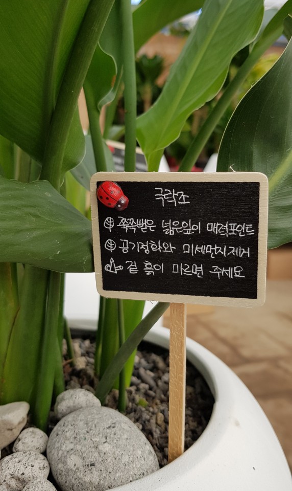 관엽식물이라 잎도 크고 하여 공기정화나 미세먼제 제거에는 상당히 효과를 보실수가 있을것입니다. 어느 위치나 자리에 두어서 키워서 그자리 위치위치 마다 인테리어로 다른 어느 소품보다도 잘어울리는 극락조입니다.