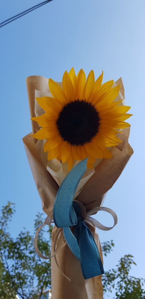 해바라기를 한송이 포장으로 해도 너무 이쁜것 같아요. 가을 하늘과 같이 보이니 물씬 가을의 정취를 새삼 느끼네요.