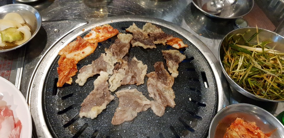 처음 나왔을때 모습입니다. 좀 있으면 뜨거운 불판에서 칙칙하면 먹을수 있을겁니다.