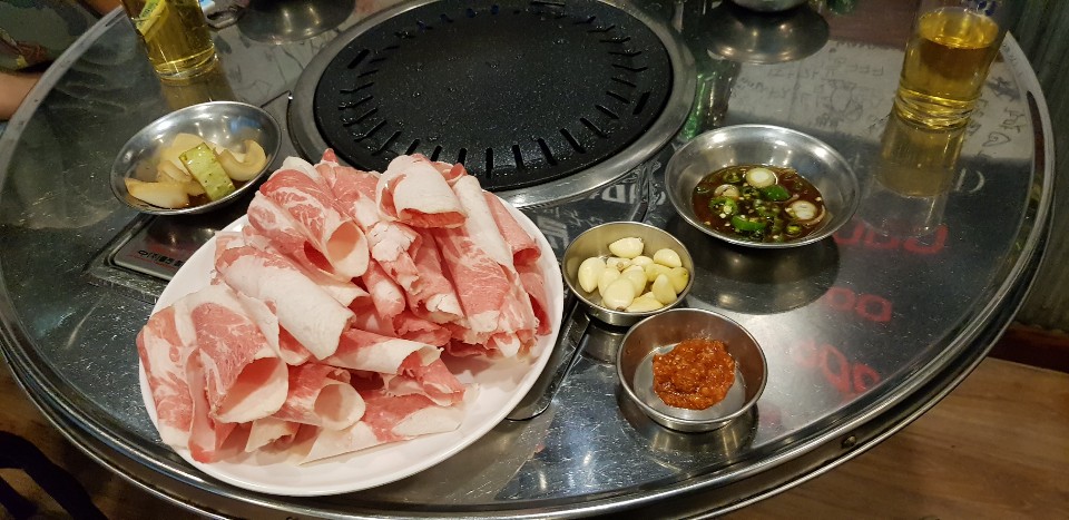 처음 나왔을때 모습입니다. 좀 있으면 뜨거운 불판에서 칙칙하면 먹을수 있을겁니다.