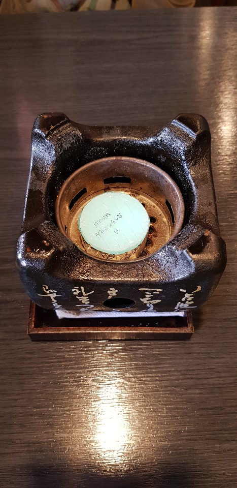 일단은 고체 연료를 준비를 해주시고 불판을 가져다 주셔서 잠시 불판에 열이 오를때 까지 잠시 기다렸습니다.