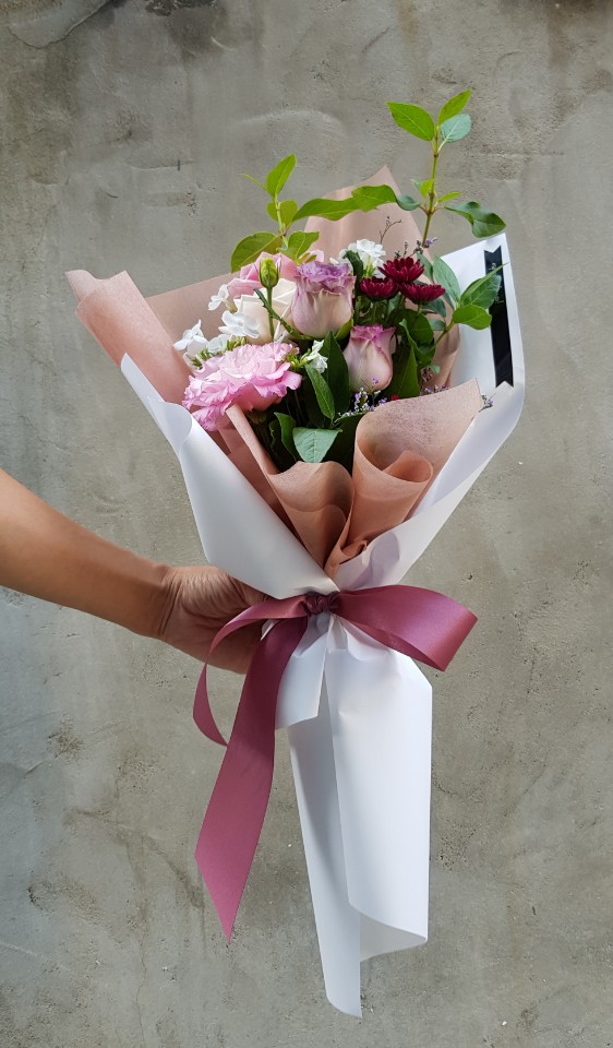 친구가 졸업전시회를 하기에 딱 친구가 좋아하는 꽃 색상과 고민을 하다 요렇게 만들어 달라고 했습니다.