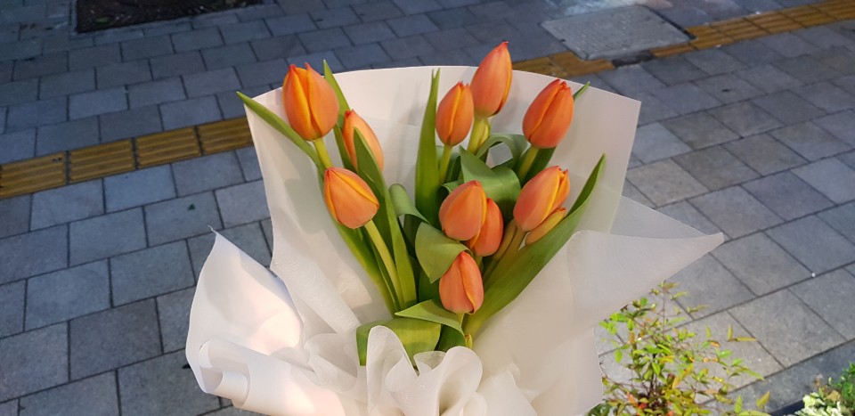 자몽튜율립 연주회 꽃다발로는 최고인듯 싶어요.