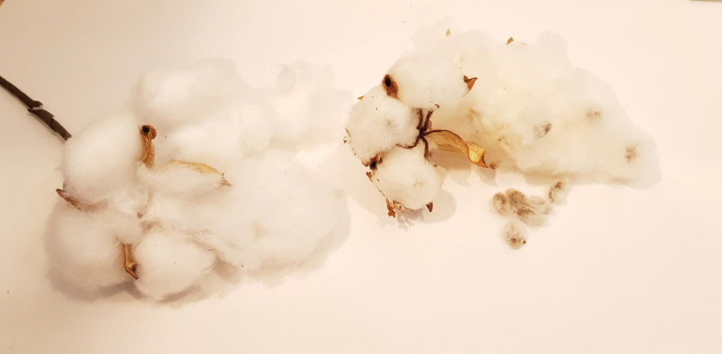 3. 여기서 진짜 목화는 흰색이다.(간혹 염색을 하지만 잘 없다.)