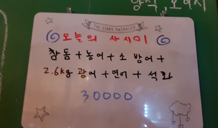 오늘의 사시미 가격은3만원 간혹 석화를 안좋아 하신분들은 회를 더준다고 하네요. 참고하세요.