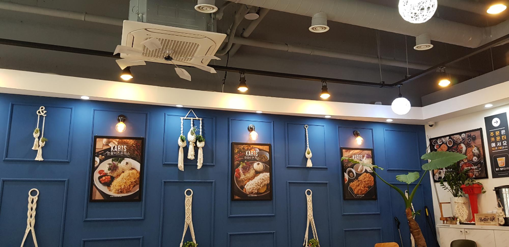 매장의 분위기는 파란색과 하얀색의 조화를 벽면에 틸란드시아와 여러 가지 화초를 인테리어가 인상적이였어요.