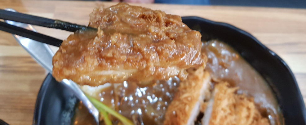 혹시 카레맛은 어떨까 해서 한입 맛보기로 해서 돈가스에 커리를 듬뿍 묻혀 한입 먹어 보니 커리맛이 입안에서