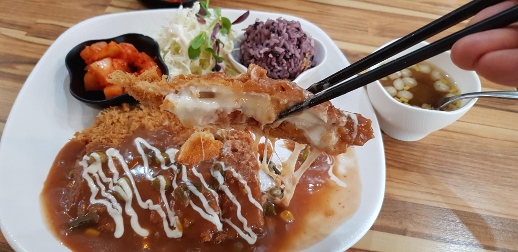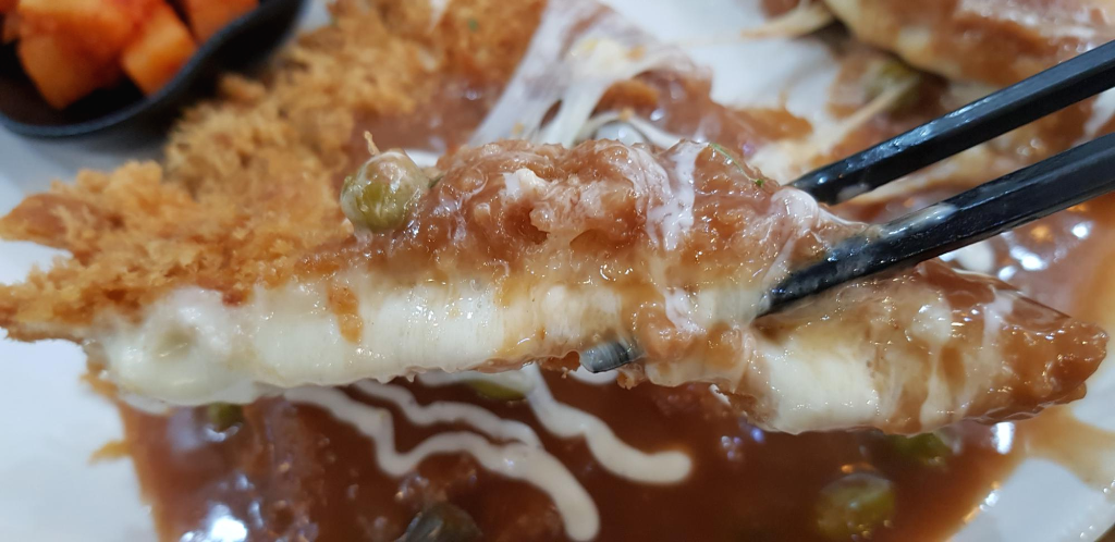 치즈가 듬뿍 들어 있는 돈까스를 한입 입에 넣어 귓가에 바사삭한 맛이 깨끗하면서도 치즈의 부드러움이