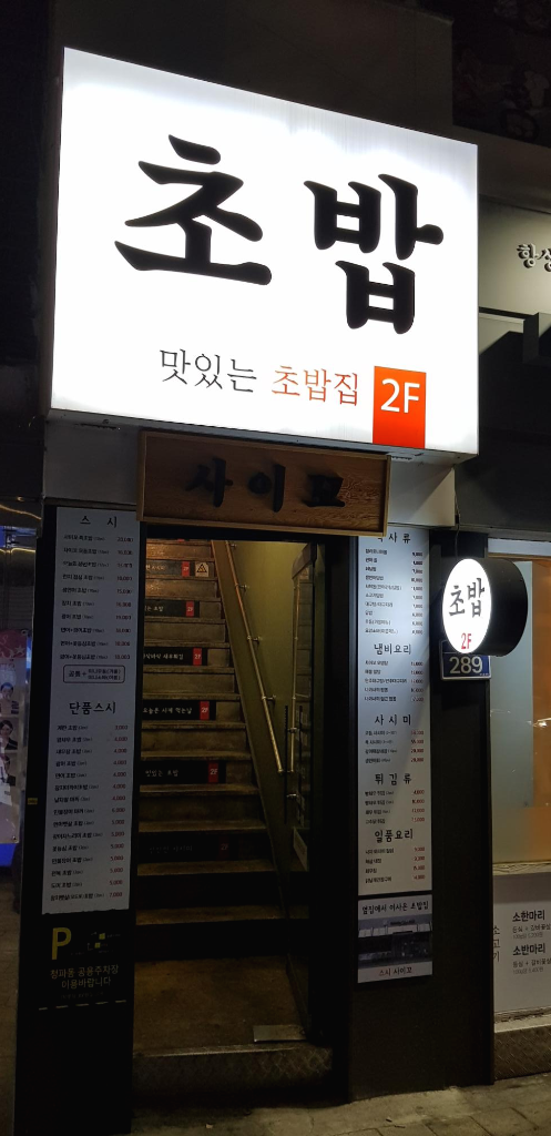 간단히 식사를 하기로 하고 동네에서도 그래도 맛집으로 평이 좋은 스시사이꼬로 가서 소주 한잔과 함께 하고