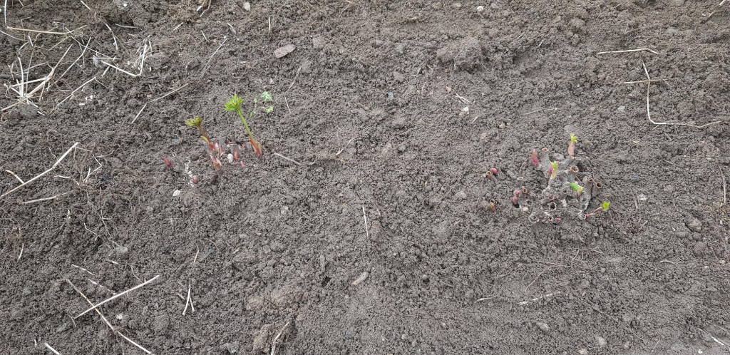 작약 모종을 심을곳을 흙을 파서 작약모종을 홈으로 심고 주변에 흙으로 마무리해주시면 이렇게 심어 지네요.