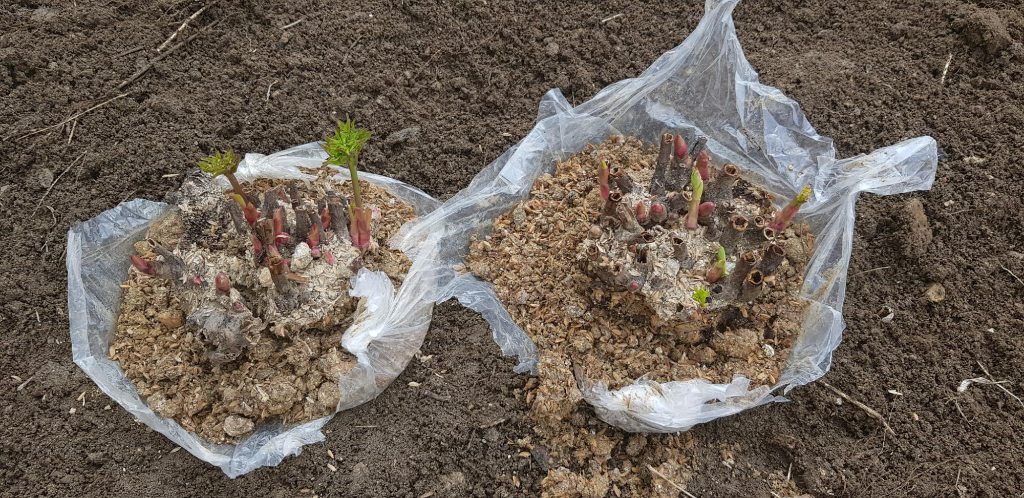 작약 모종의 비닐을 풀러 보니 모종들이 나눠지네요. 조심스레 심어야겠어요.