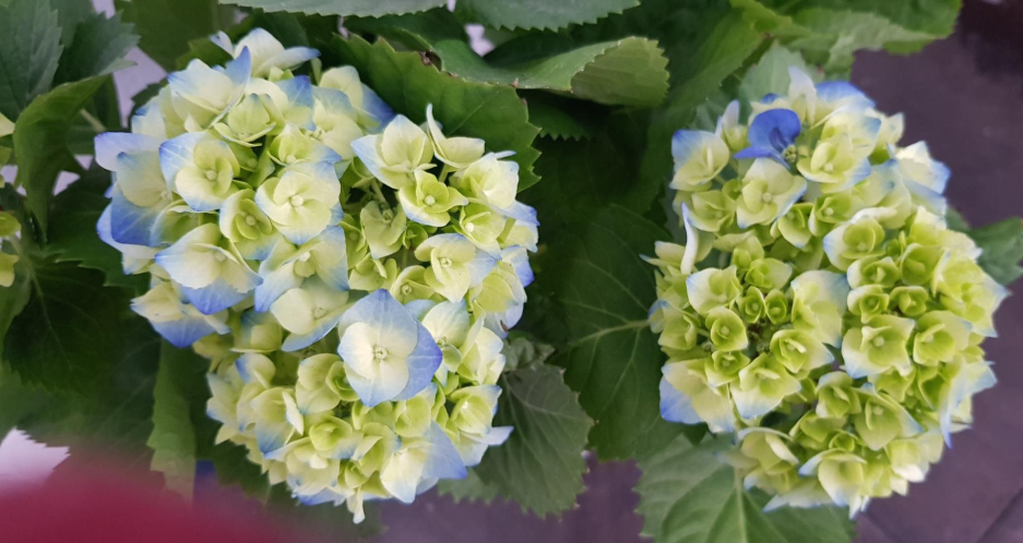 수국 꽃들이 잘 어우려 저 있어 주변의 색과도 잘 어울리면 수국 꽃이 내는 아름다움