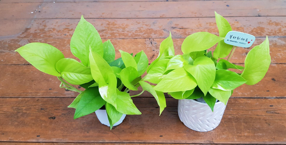 시각적인 면으로 따지면 형광스킨답서스가 좋은 것 같지만 개개인의 취향에 따라 다르니