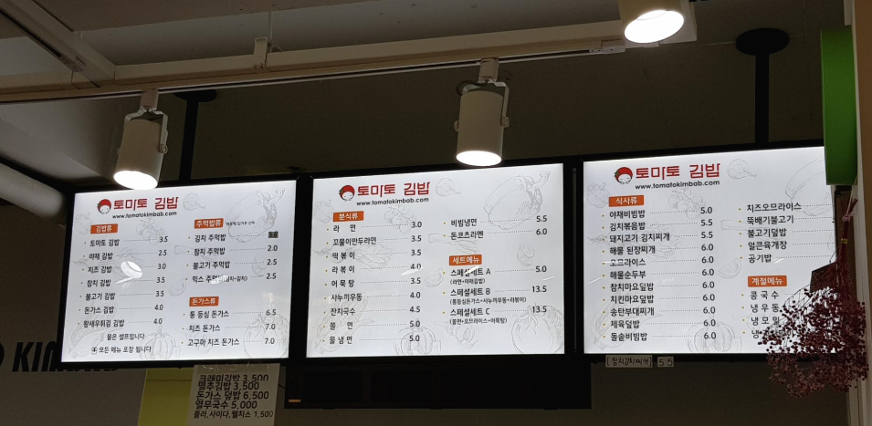 토마토 김밥 매장에서는 다양한 메뉴로 되어 있어서 골라 먹는 재미도 솔솔 하겠어요.