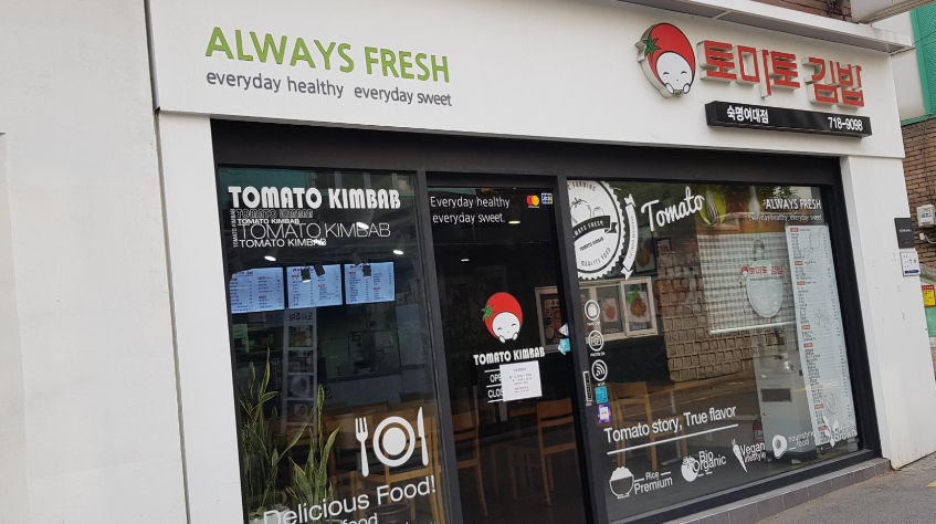 숙대 맛집 발견 음식점이 있는 곳에 눈에 확 들어오는 간판 발견 토마토가 웃는 모습에 이끌려