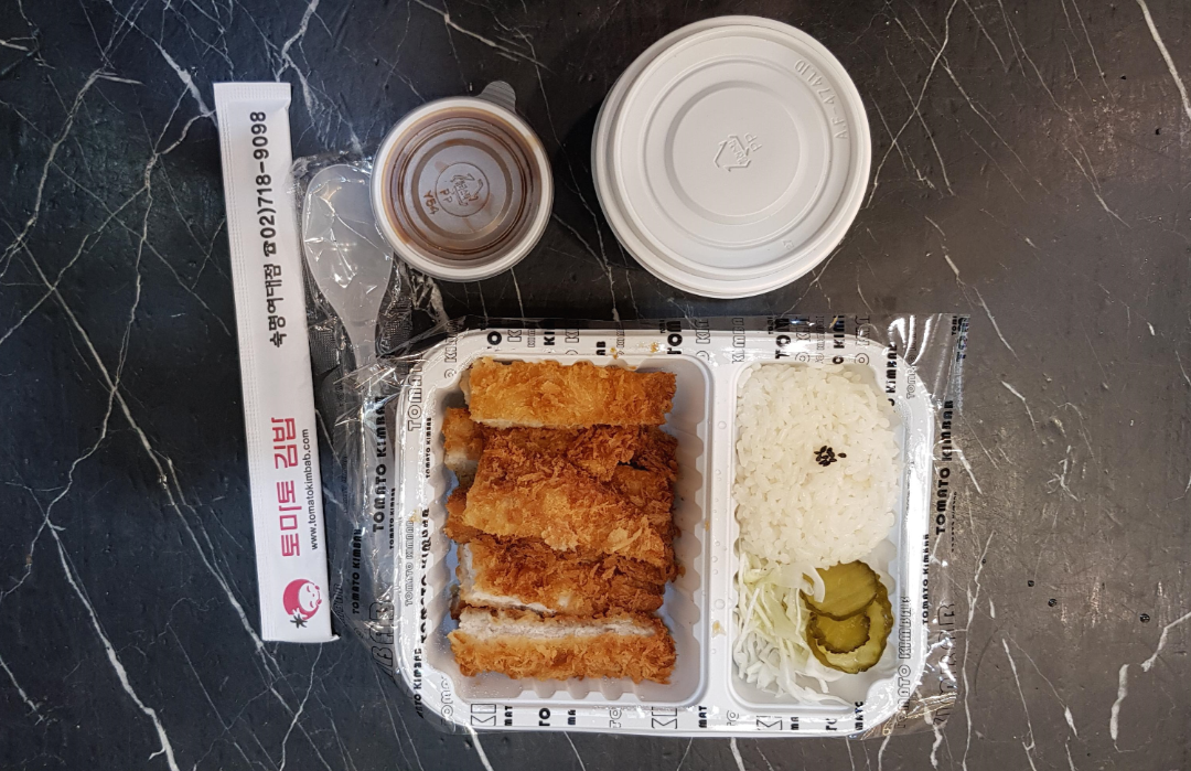 그래도 돈가스가 괜찮을 것 같아 등심 돈가스, 소불고기 주먹밥 두 개를 주문 포장을 하였습니다.