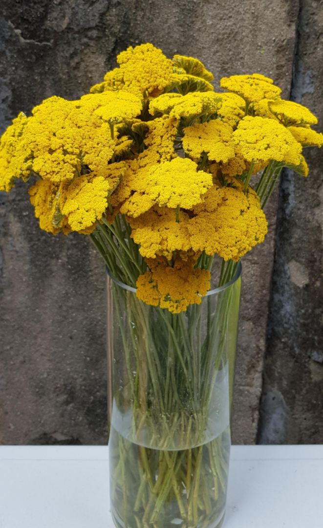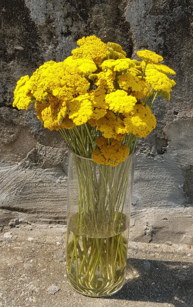 더 잘 견디는 것 같아 노란색 아킬레아 꽃을 화병에 넣어 봤어요.