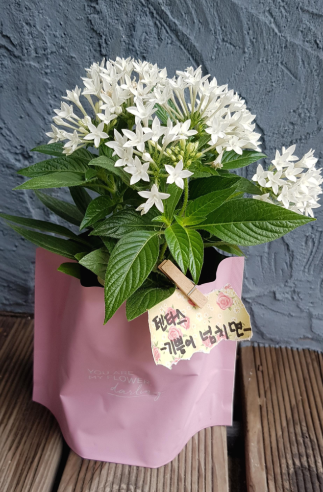 할 때 별처럼 흰색 핑크색 여러 가지로 피는 펜타스가 어울릴 것 같아 보여요.