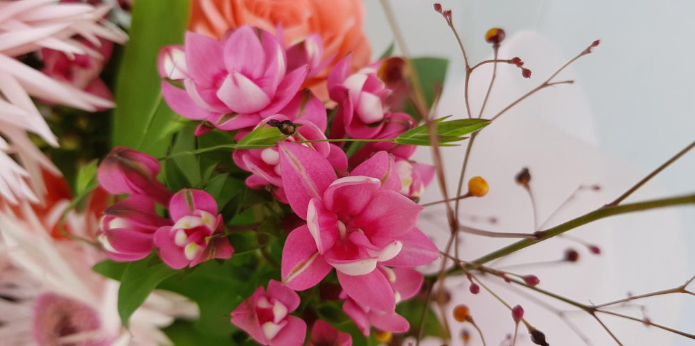 부바르디아 꽃은 핑크색 하얀색 보통 두 종류를 많이 꽃다발로 활용하는 것 같습니다.