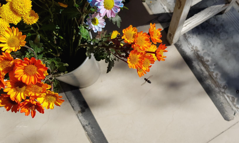소국 꽃에서 나는 꿀맛이 어떤 맛이 날까 궁금도 하고 쌀쌀한 날씨에 꽃들도 많지 않고 하다 보니 소국 꽃을 물통에 꽂아