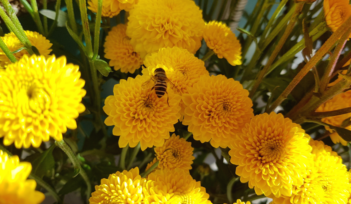 소국 꽃에서 나는 꿀맛이 어떤 맛이 날까 궁금도 하고 쌀쌀한 날씨에 꽃들도 많지 않고 하다 보니 소국 꽃을 물통에 꽂아