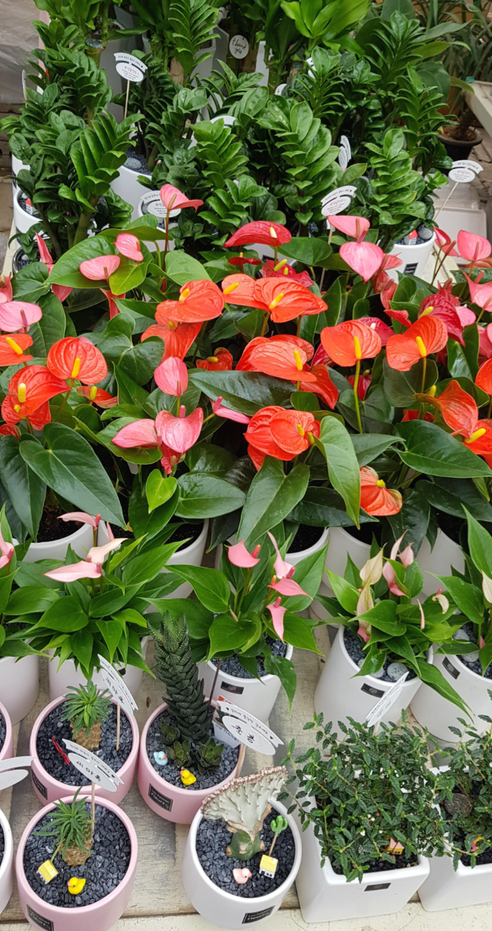 식물시장 이리 봐도 저리 봐도 너무나 활짝 핀 꽃들이 살짝궁 반려식물로 데리고 가달라고 이쁜 모습으로